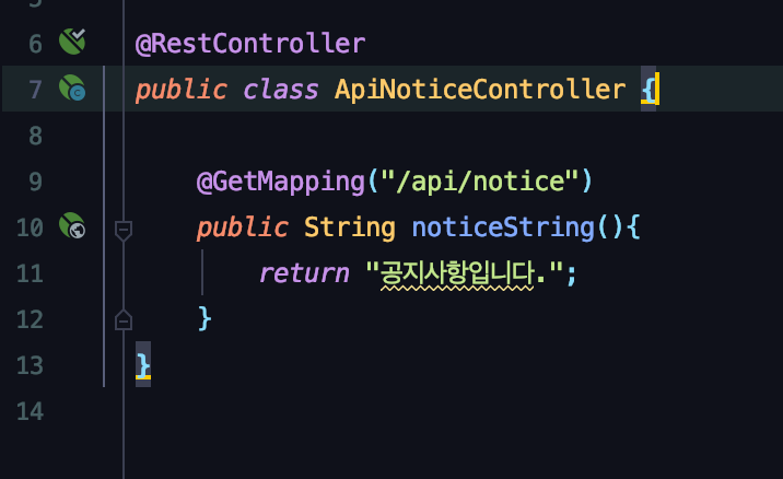 이클립스의 경우 메소드 옆에 콩버튼을 누르면