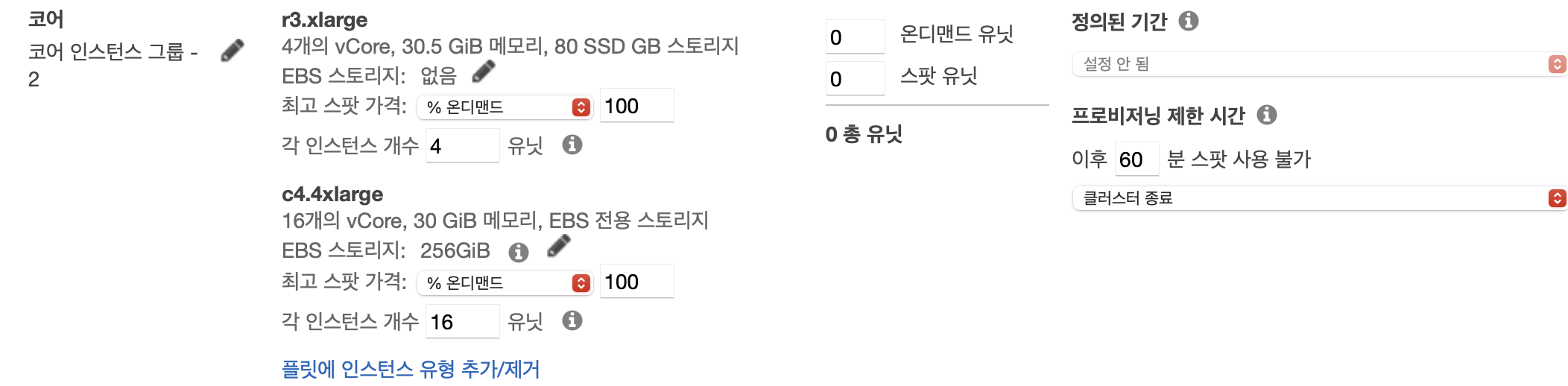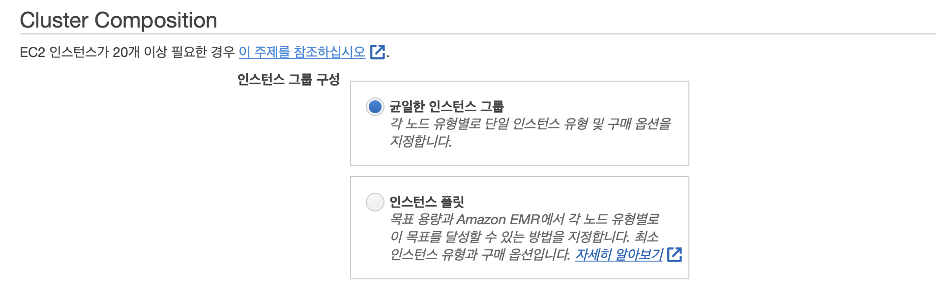 균일한 인스턴스 그룹 : 노드 유형별로 균일한 스펙의 인스턴스를 사용한다.