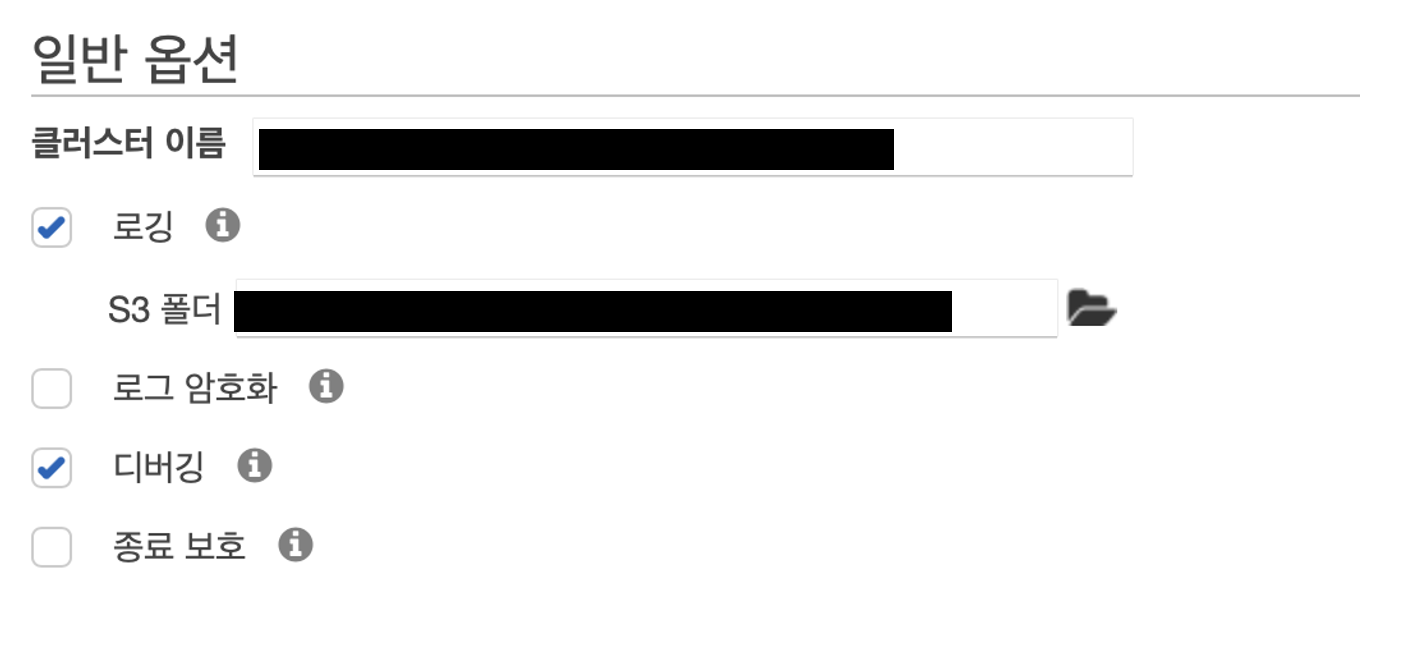 여러 마스터 노드 : emr 클러스터의 마스터 노드를 이중화 할 것인지 선택한다.