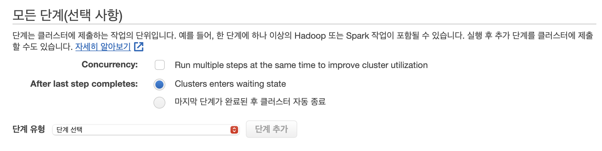 마지막 단계가 완료된 후 클러스터 자동 종료 : 클러스터가 종료 된다.