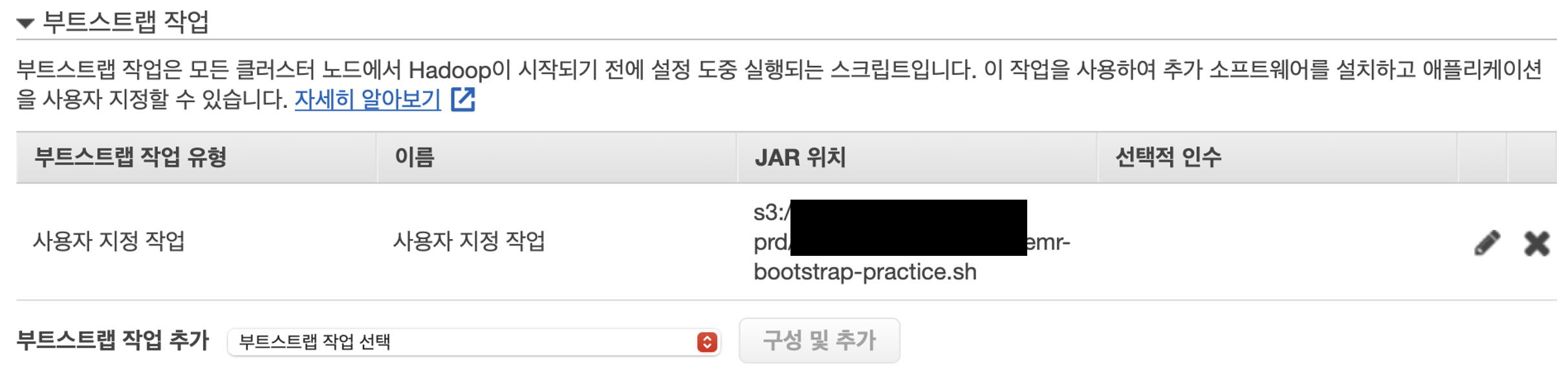 위 동작은 EMR 클러스터가 생성될 때 bootstrap.sh 에서 수행한다.