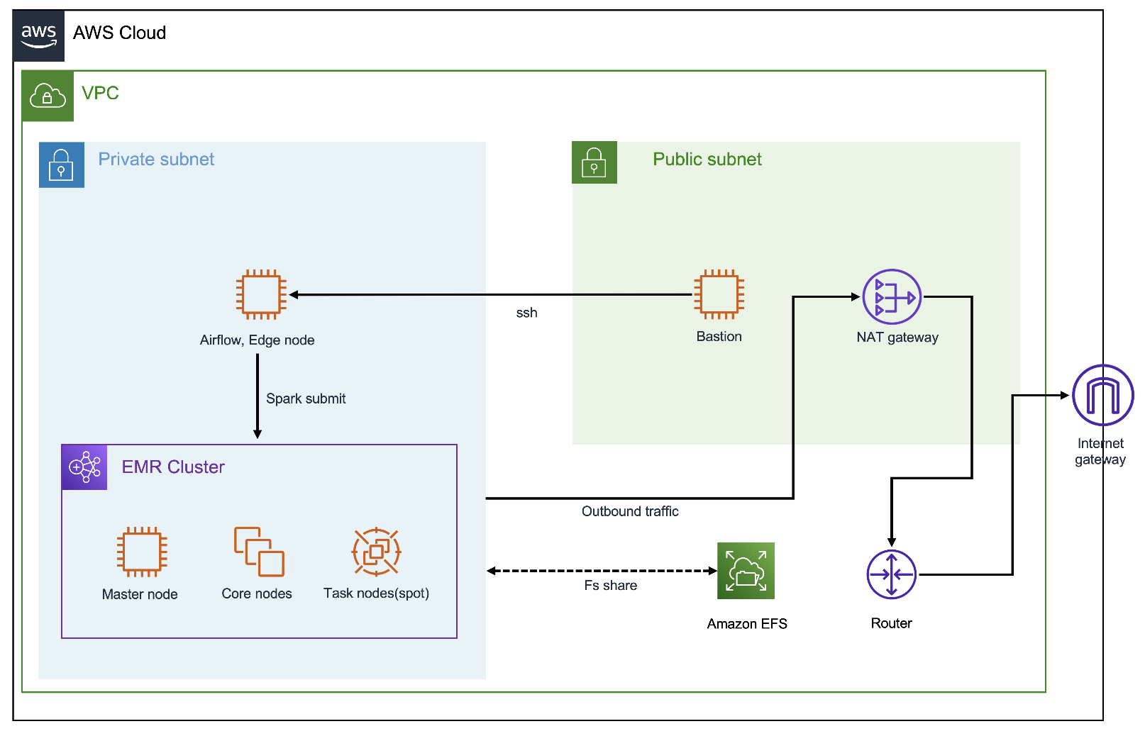 - airflow 를 통해 spark job submit이 가능하도록 따로 인스턴스를 두었다.