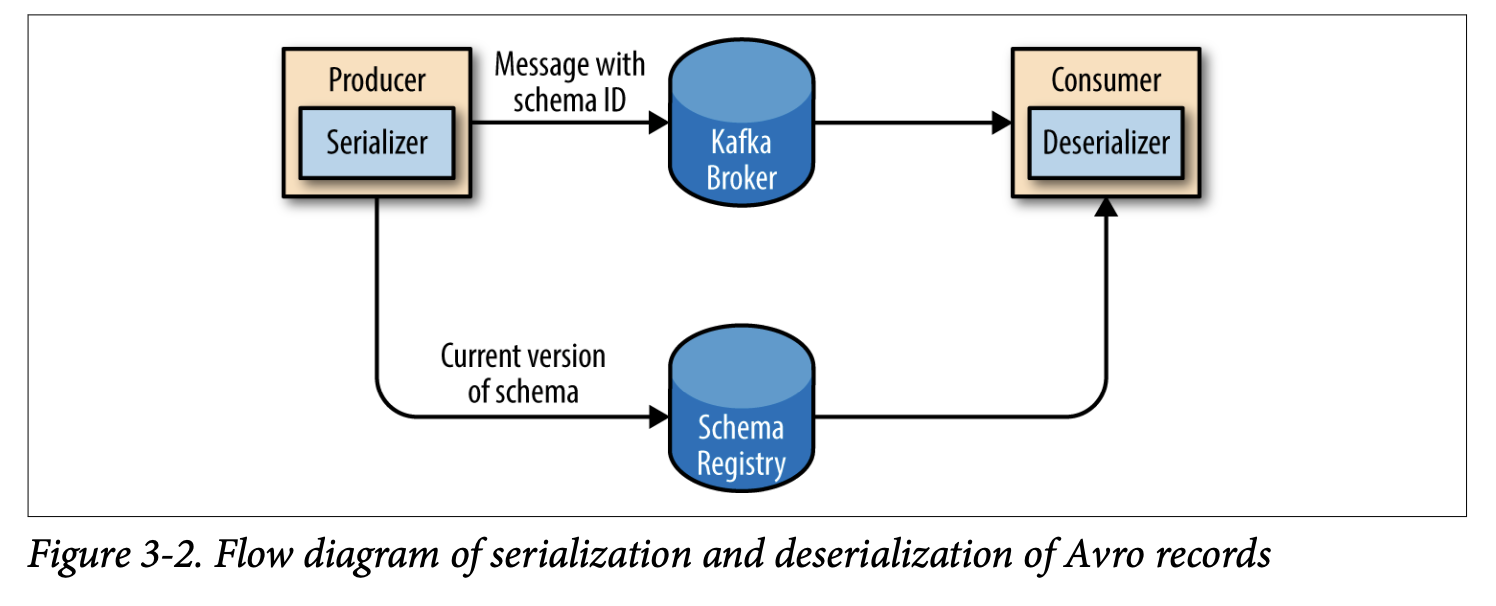 스키마 레지스트리에 id와 함께 스키마 버전들이 정해져 있고 애플리케이션은 그 id를 가지고 스키마 적용한다. (챕터3 내용)