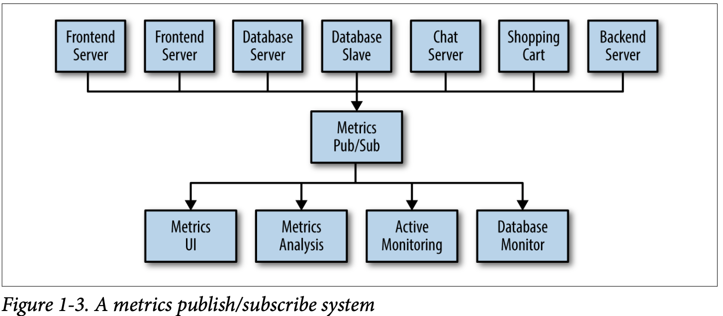 카프카는 애플리케이션의 메트릭과 로그데이터를 모으는 데 이상적이다.