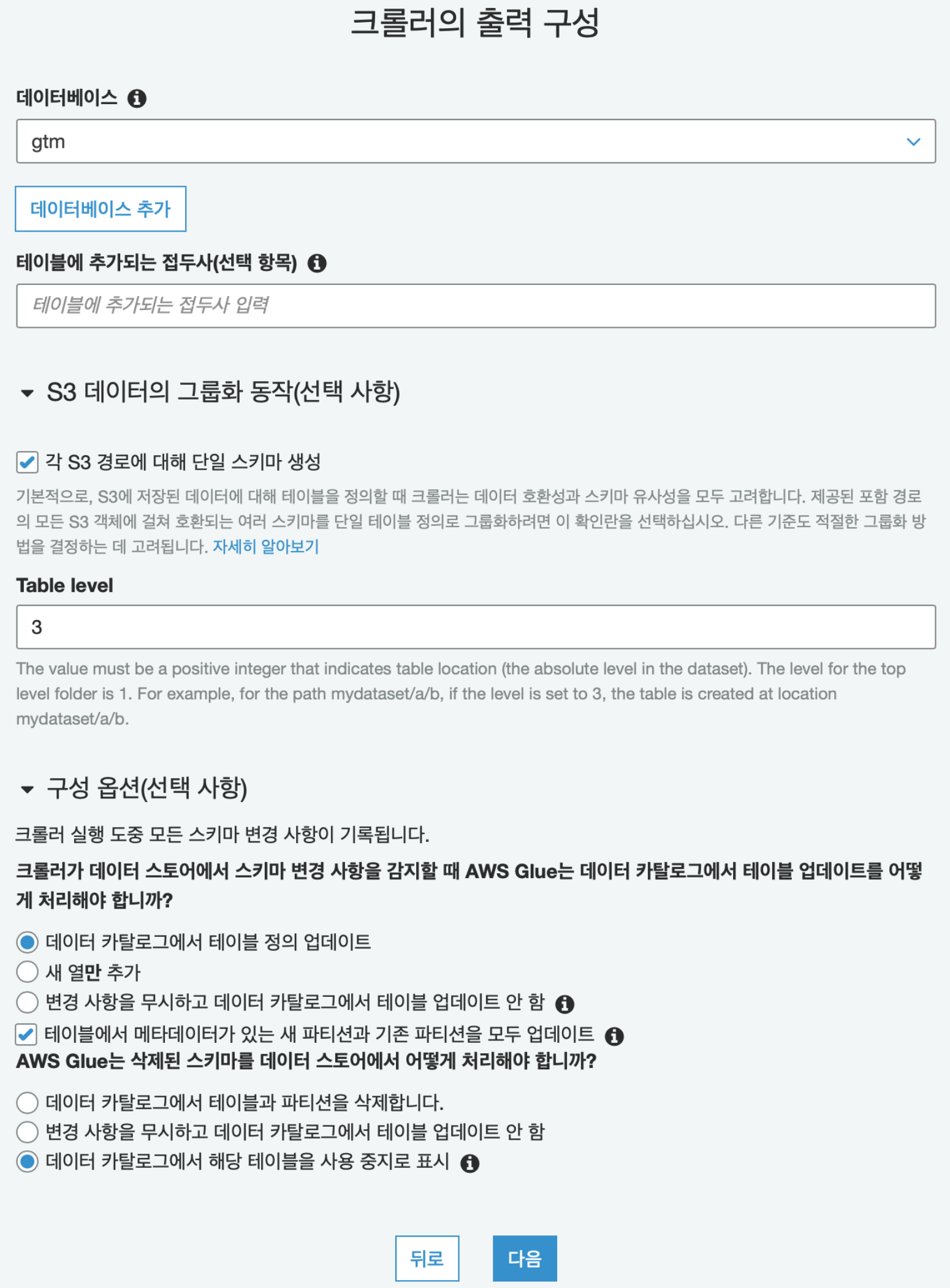 - 크롤러에 스키마 변경 옵션 "새 열만 추가"로 바꾼다.